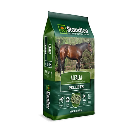 Standlee Premium Western Forage Alfalfa Pellets are made from high-quality sun-cured forage formed into ¼ inch hay pellets that are easy to measure and feed. Standlee Alfalfa hay is high in protein to support active and growing horses and low in carbohydrates, making it an excellent option for carb-sensitive animals.