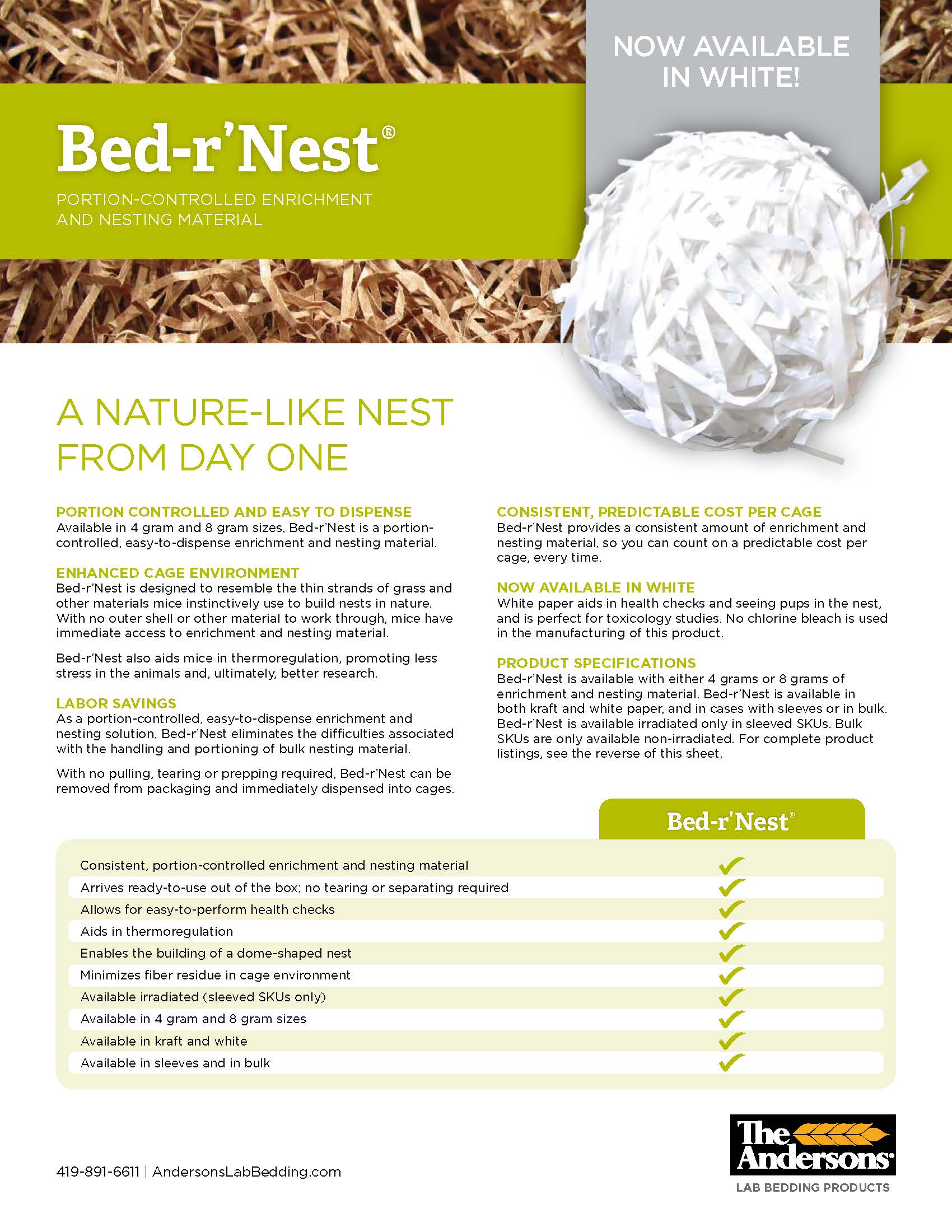 *Each 8 gram Bed-r’Nest provides animals with industry recommended amount of nesting material.
