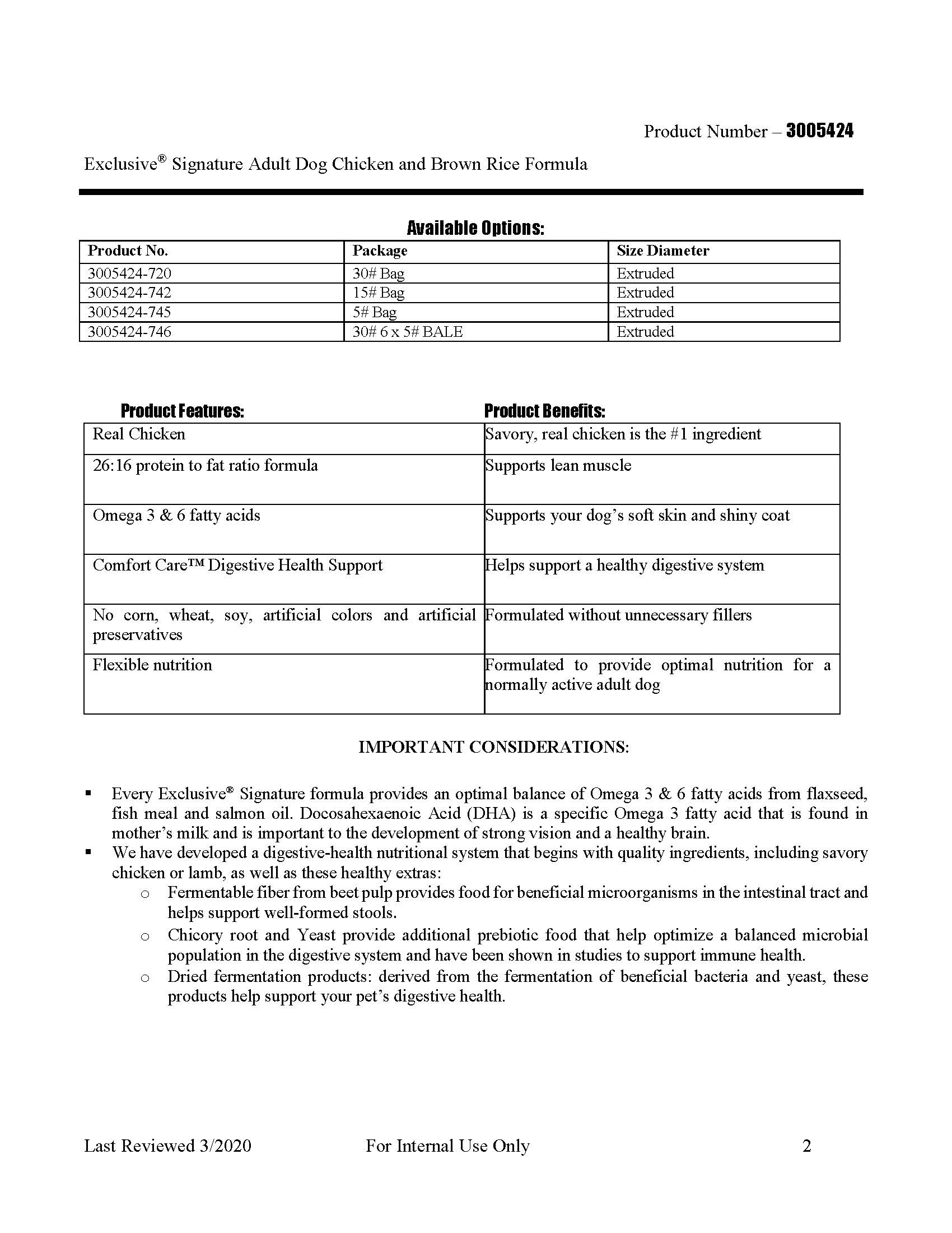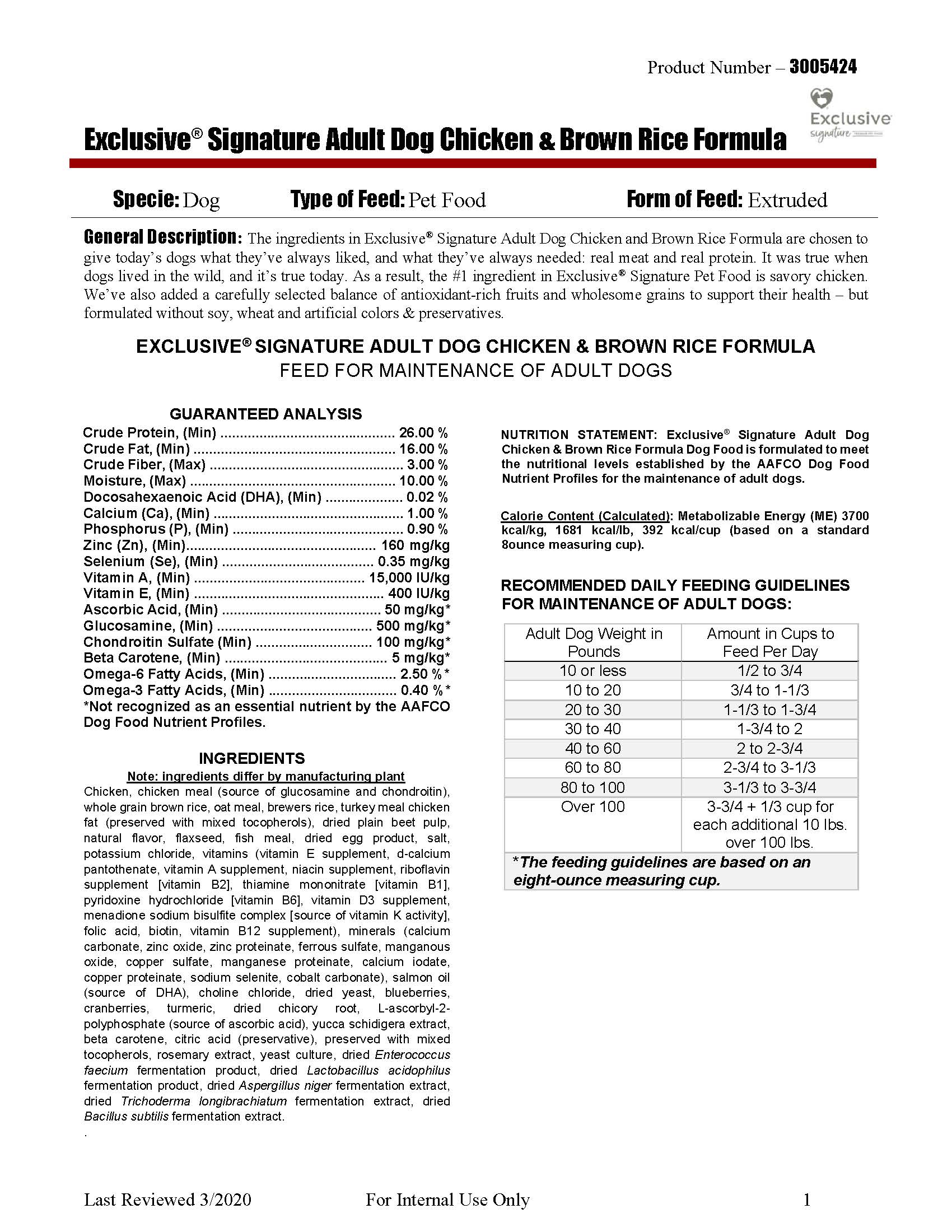 Exclusive Signature Adult Dog Chicken & Brown Rice Formula - 4713