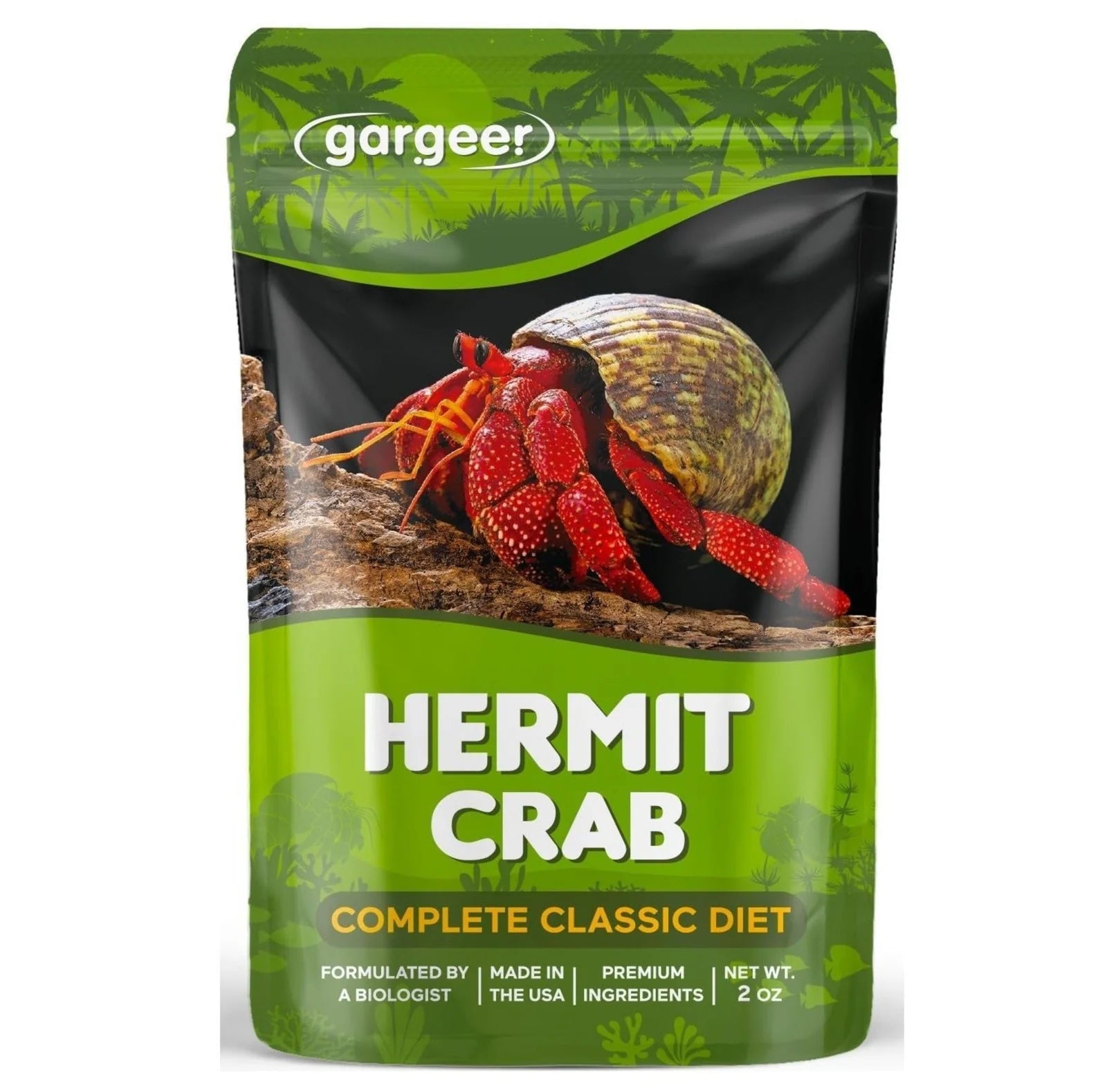 Gargeer’s Hermit Crab diets contain no artificial colors or flavors. SAFE. Gargeer’s Hermit Crab diets contain no harmful ingredients, such as ETHOXYQUIN or COPPER SULFATE. GO! Feed a small amount daily. If extra food remains, offer less. If all the food is consumed, offer more. Dispose of uneaten food and offer fresh daily. Our premium Hermit Crab products can be stored in the refrigerator to extend shelf life.