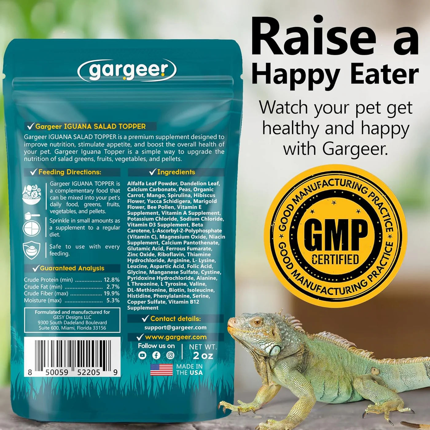 Elevate and enrich your iguana's diet with our versatile topper, delivering a burst of deliciousness. Experience the ease of elevating salad greens, fruits, vegetables, and pellets, transforming mundane meals into extraordinary feasts. Infused with irresistible ingredients like Dandelion Leaf, Spirulina, and Marigold. It ignites taste buds and leaves your iguana craving for more.