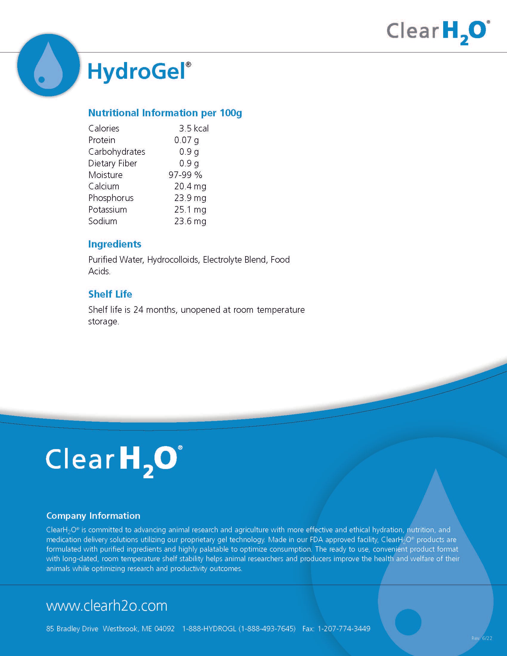 HydroGel is a non-wetting water gel for animal hydration. 98% pure water. The industry standard for hydration during transportation.
