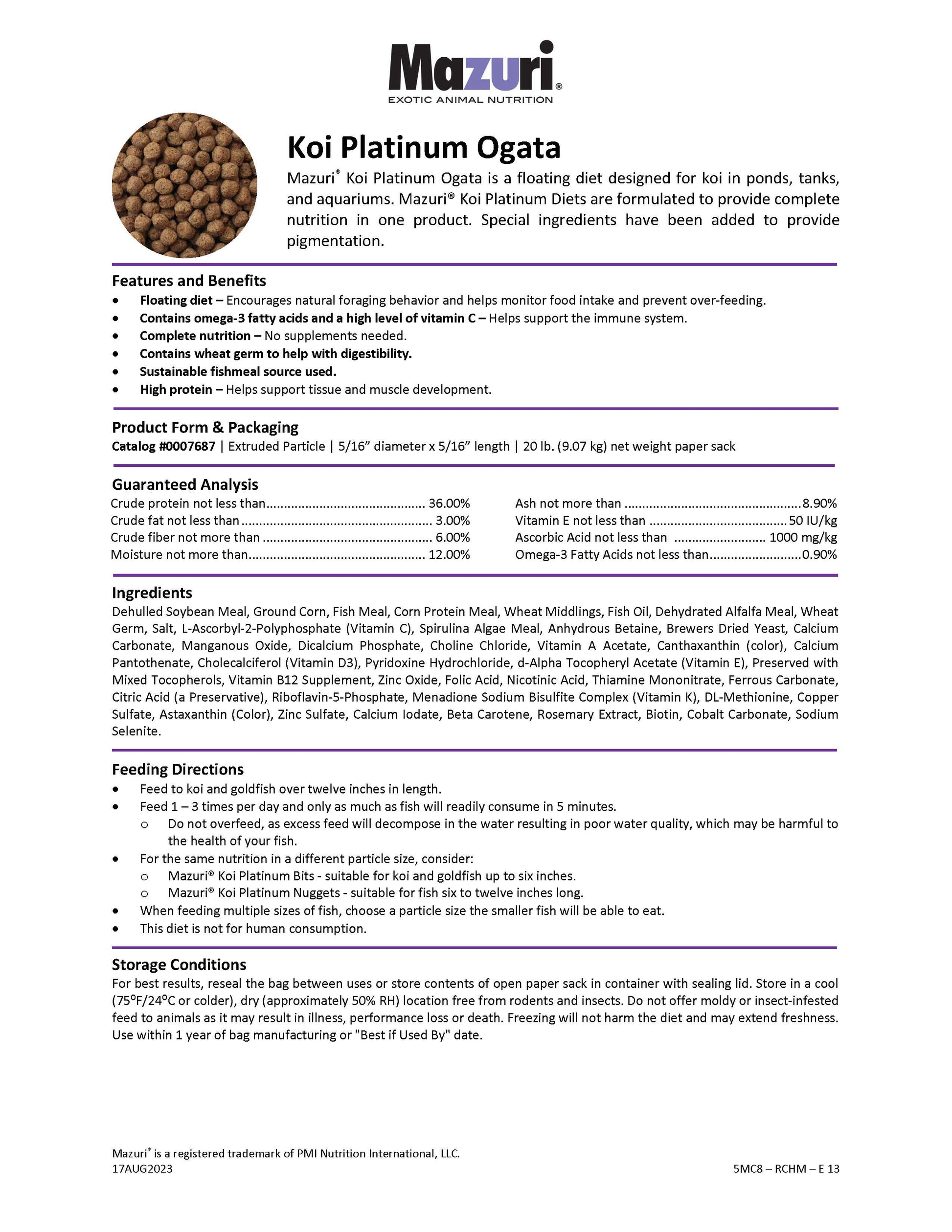 Mazuri Koi Platinum Ogata 5MC8 - 20lb
