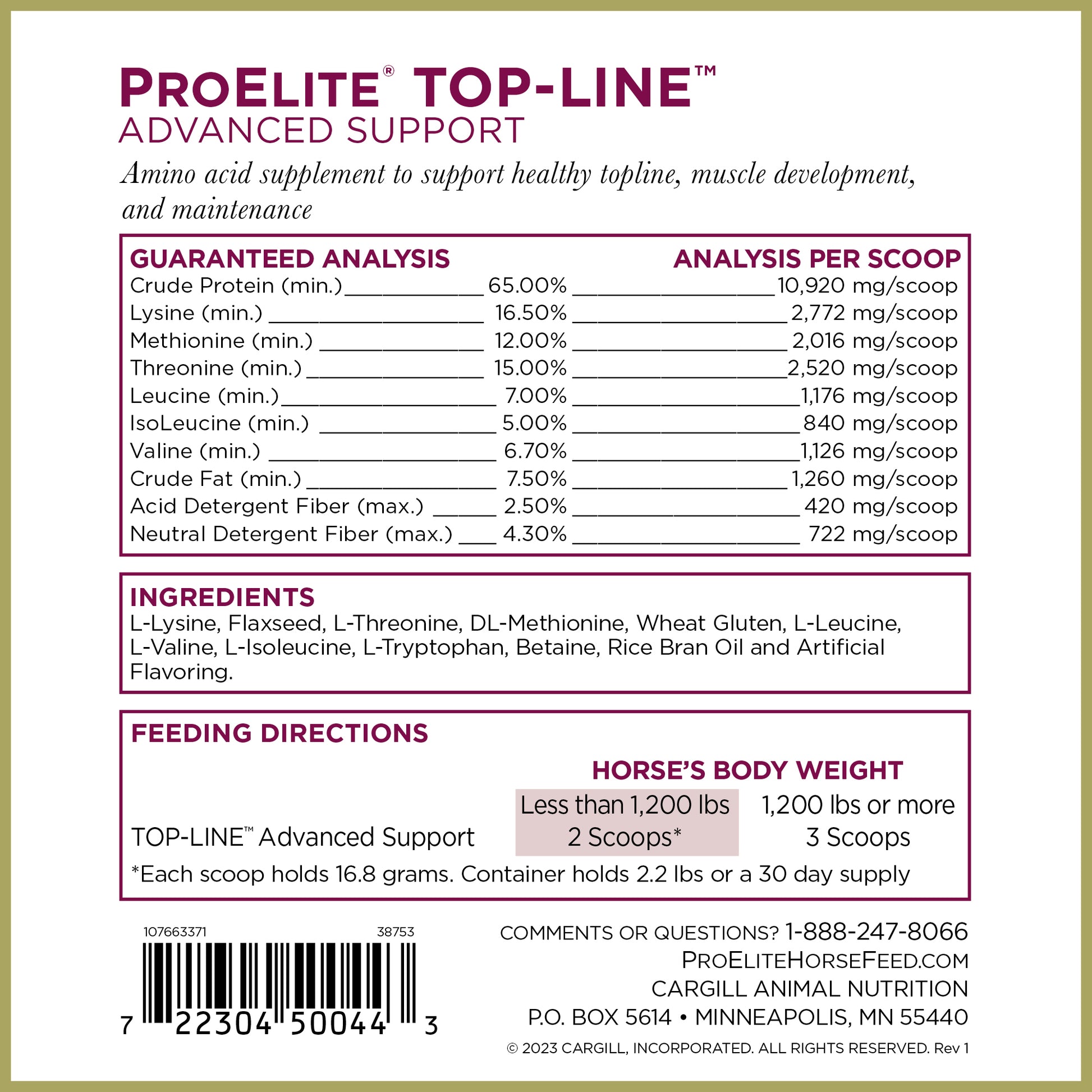 - Amino acid supplement to support healthy topline, muscle development, and maintenance