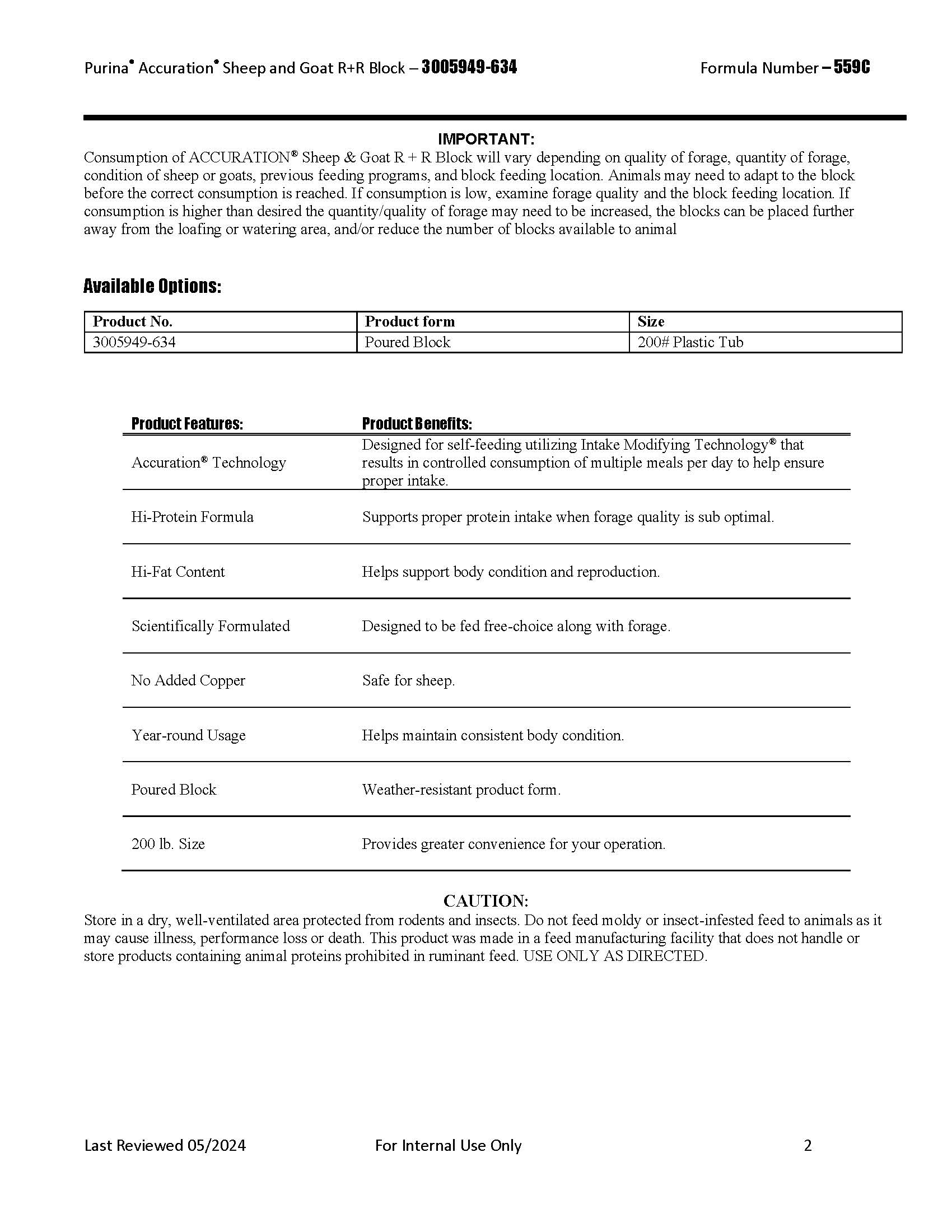 Purina Accuration Sheep & Goat RR Block 559C - 200lb