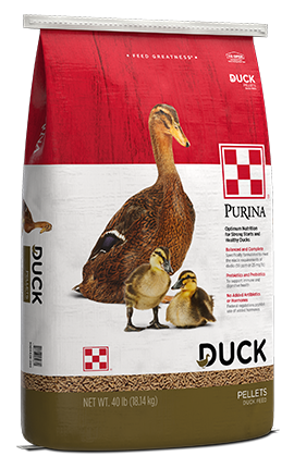 Purina® Duck Feed is specialized to meet the unique nutritional needs of ducks. Recommended for ducklings from day one through first egg and non-egg-laying adult ducks.