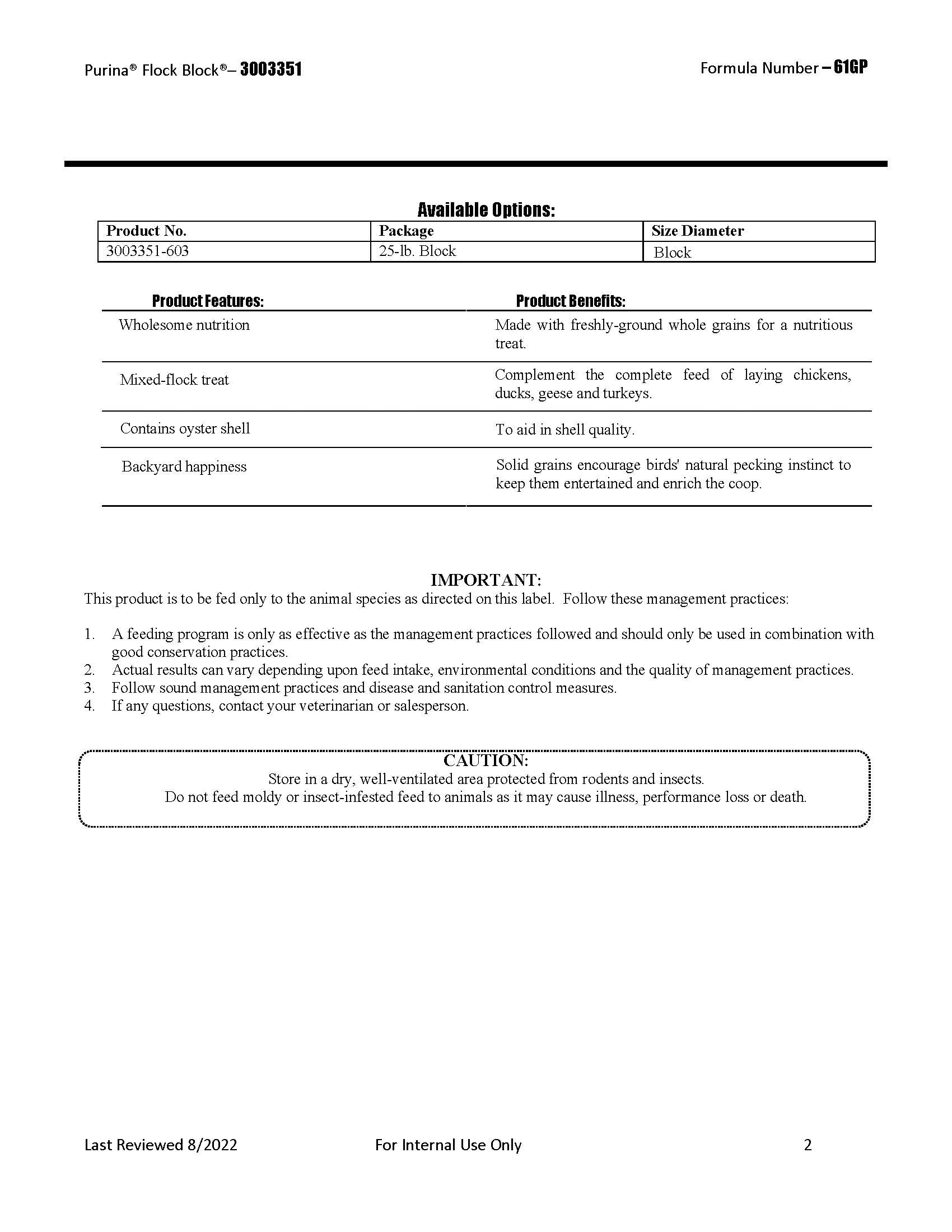 Purina® Flock Block is a whole grain enrichment supplement that provides optimum nutrition for healthy meat birds and mixed poultry flocks.