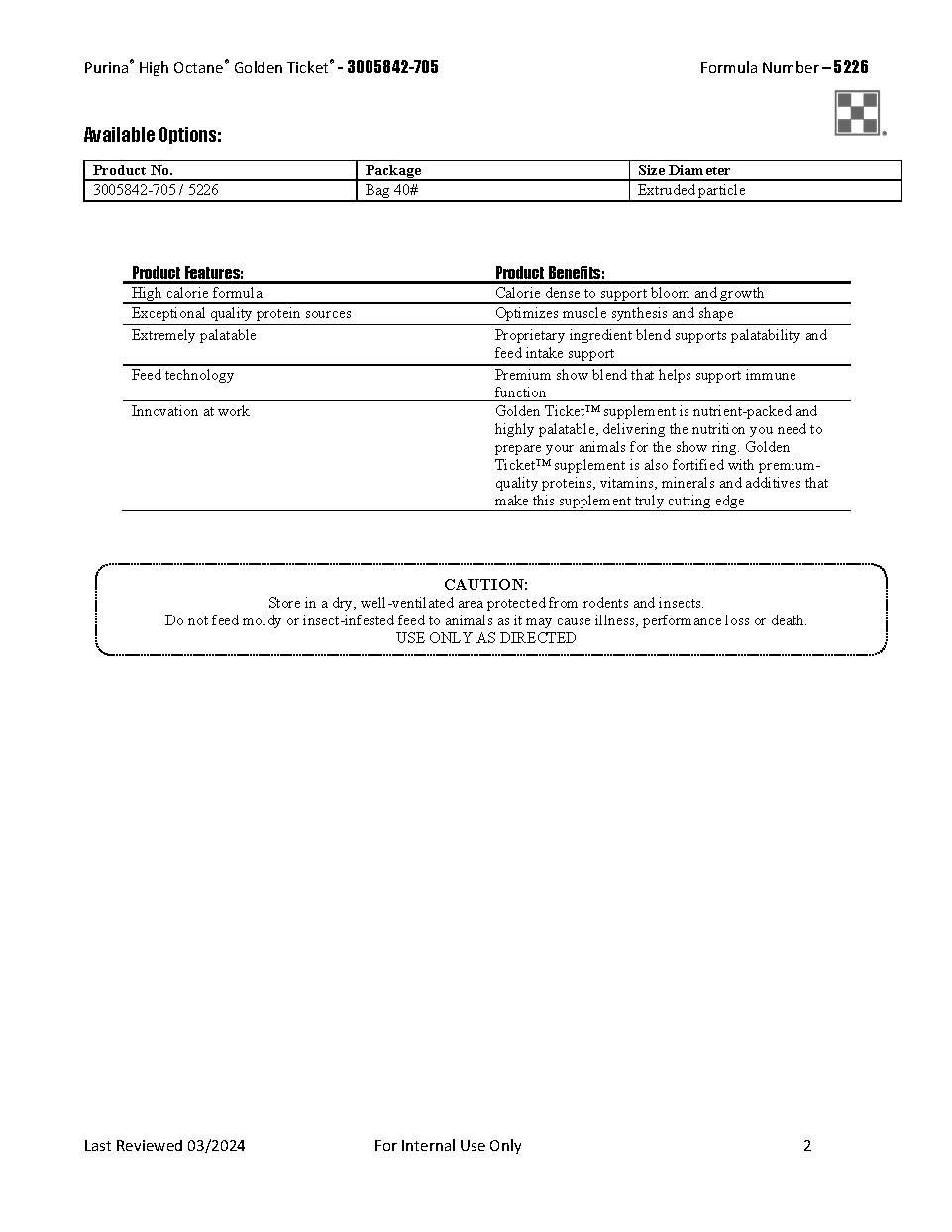 Purina High Octane Golden Ticket 5226 - 40lb