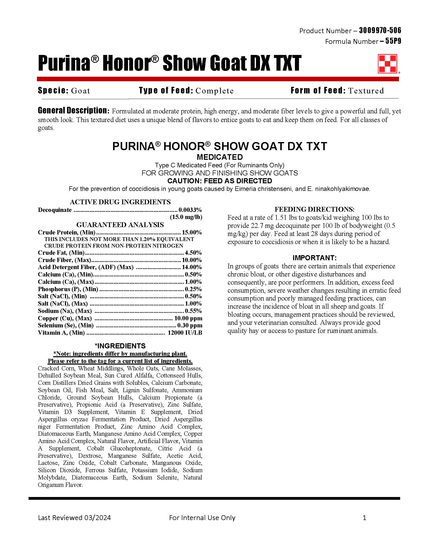 Purina Honor Show Goat DX 55P9 - 50lb