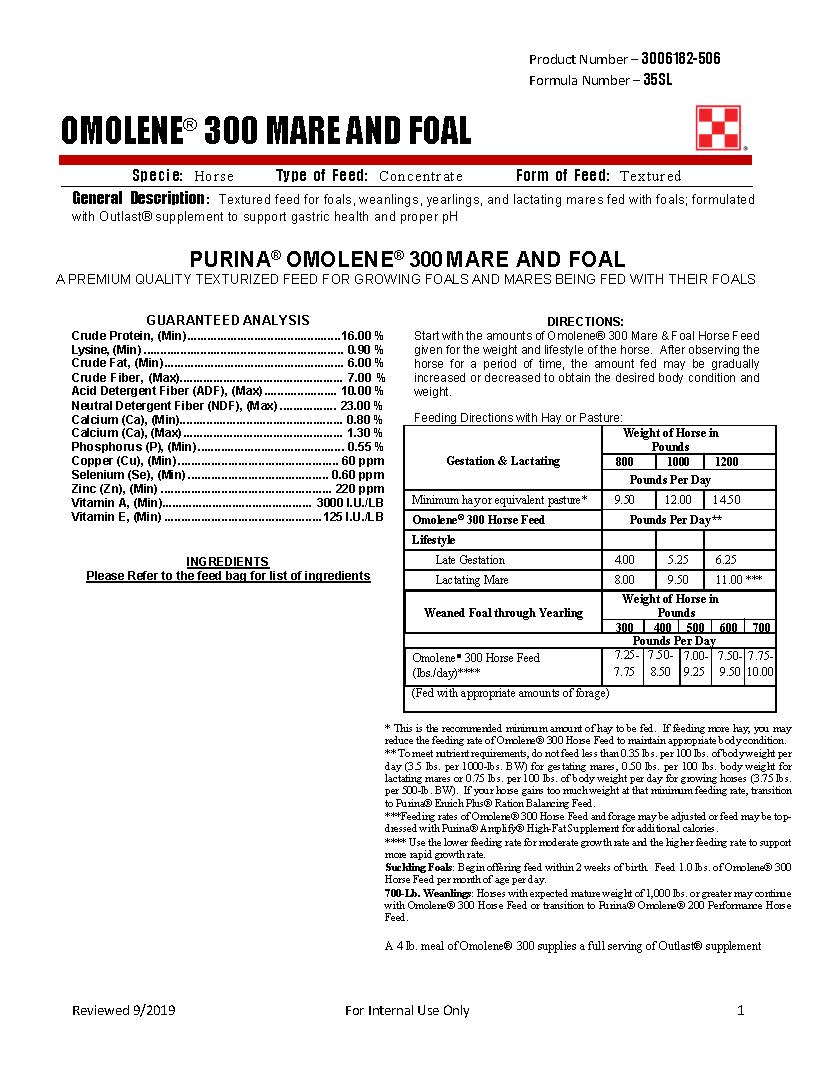 Purina Omolene 300 Mare + Foal 35SL - 50lb