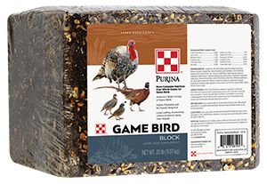 Purina Game Bird Block is designed to supplement the natural diet of game birds. With more complete nutrition than whole grains, it attracts a wide variety of game birds.
