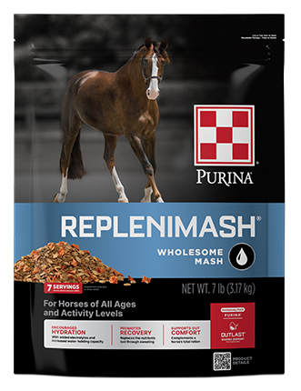 Purina® RepleniMash™ Product with Outlast Gastric Support is a palatable mash designed to nourish your horse and their digestive system.