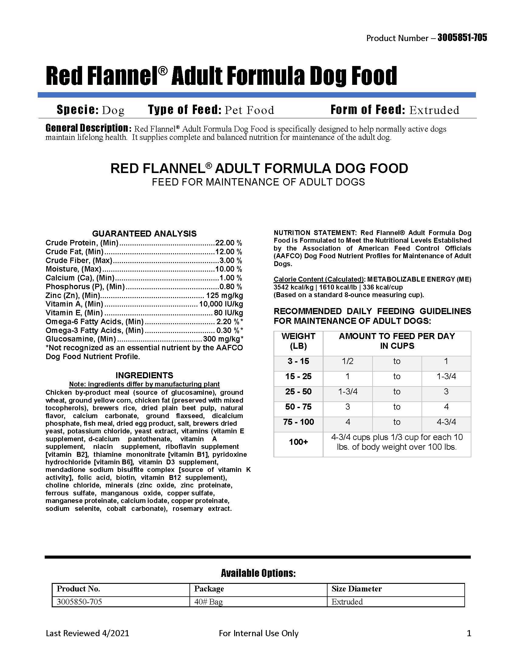 Red Flannel Adult Dog Formula 4739 - 40lb