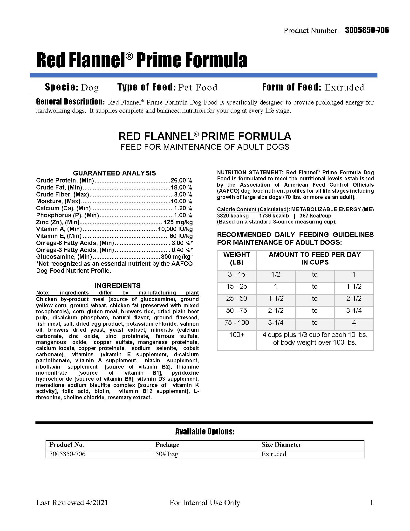 Red Flannel Prime Formula Dog Food 4738 - 50lb