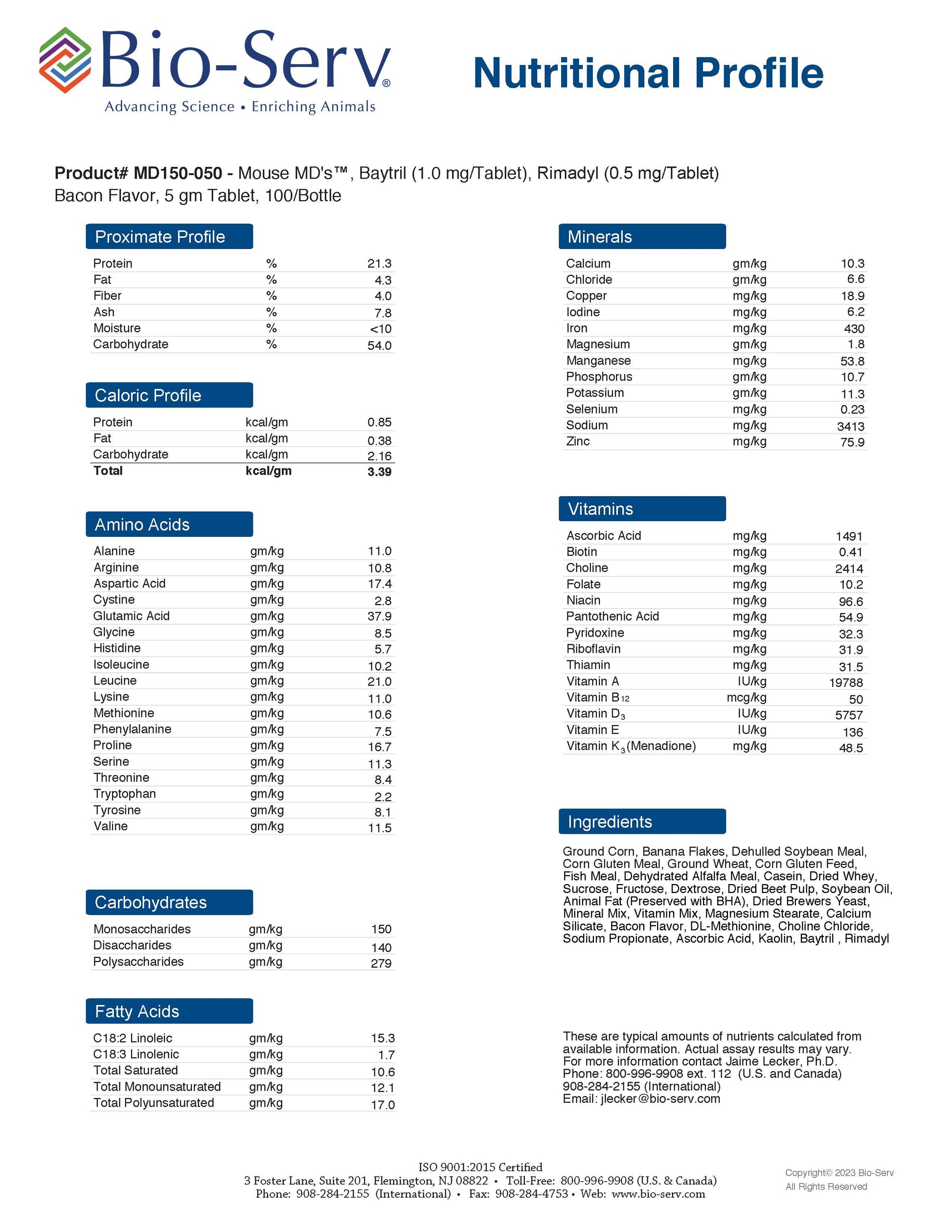 - Mouse Average Daily Dose: One 5 gram Tablet/Mouse per day meets both the daily nutritional and medication needs of mice