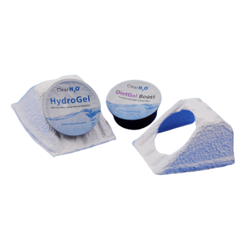 - Clear H20 Holder/Holder Backless - designed with a more slanted presentation allowing animals easier access to the gel.