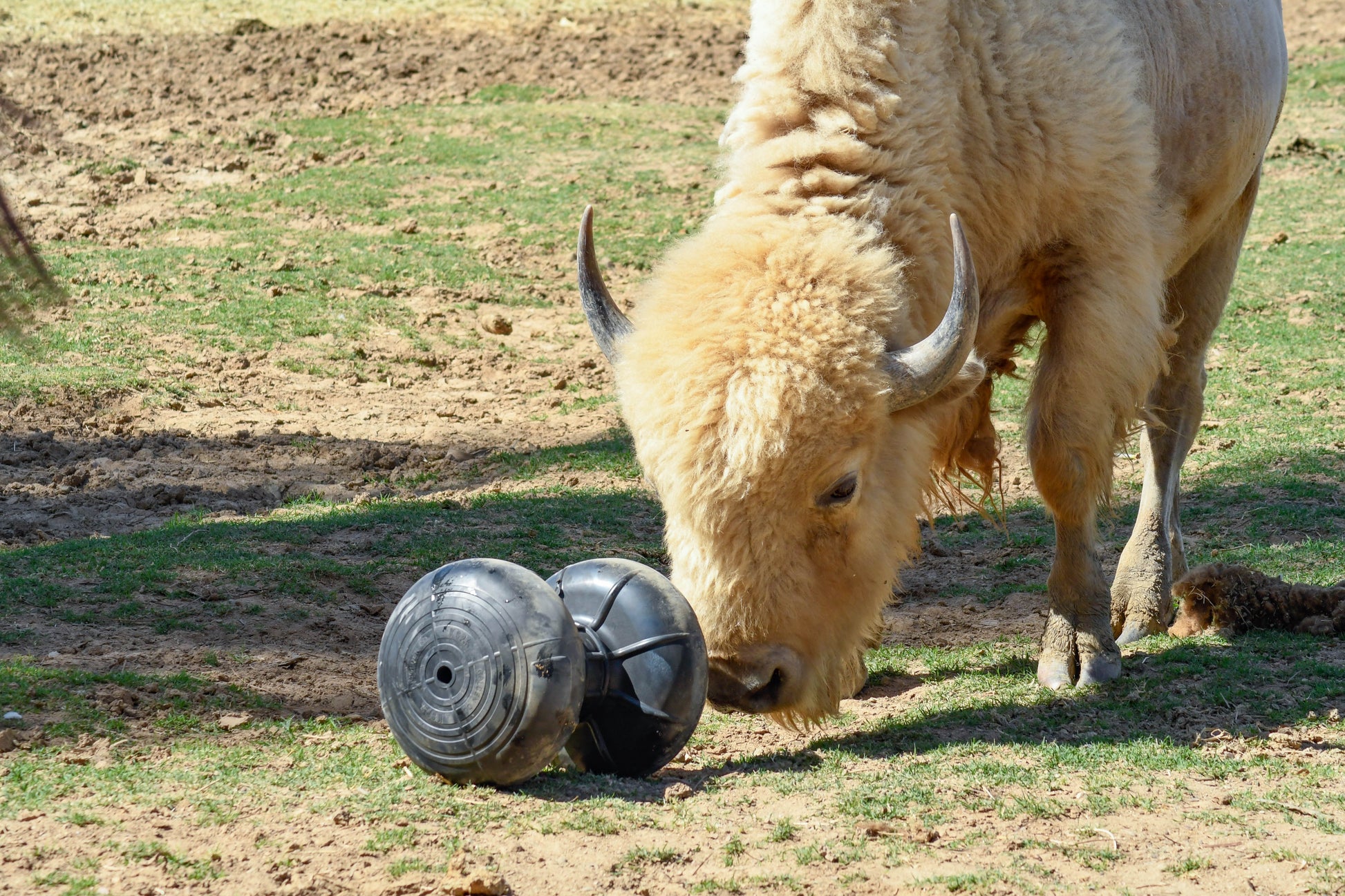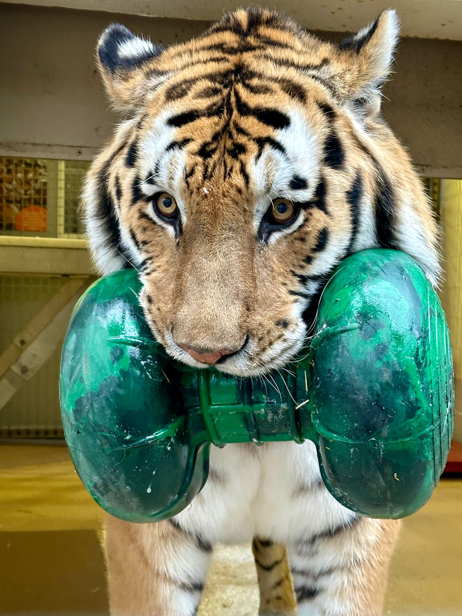 This 50lb solid roller by Pet Kore has been put the test by a variety of species including bears, elephants, dolphins, and killer whales with great results. Made from natural rubber, it is also non-abrasive, and neutrally buoyant in saltwater!