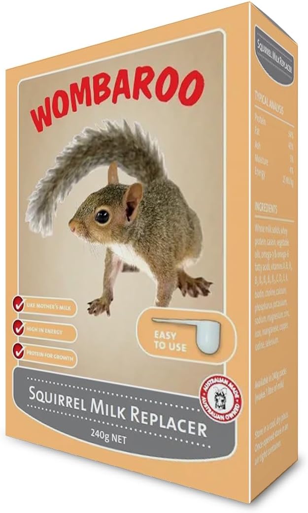 Wombaroo Squirrel Milk Replacer is a nutritionally-balanced milk substitute for squirrels. The formula is perfect for hand-feeding orphaned squirrels and other rodents that have high levels of fat and protein in their milk. Specially formulated to match the composition of the mother squirrel’s milk, Wombaroo is a high-energy milk with high levels of fat and protein to support growth and weight gain.