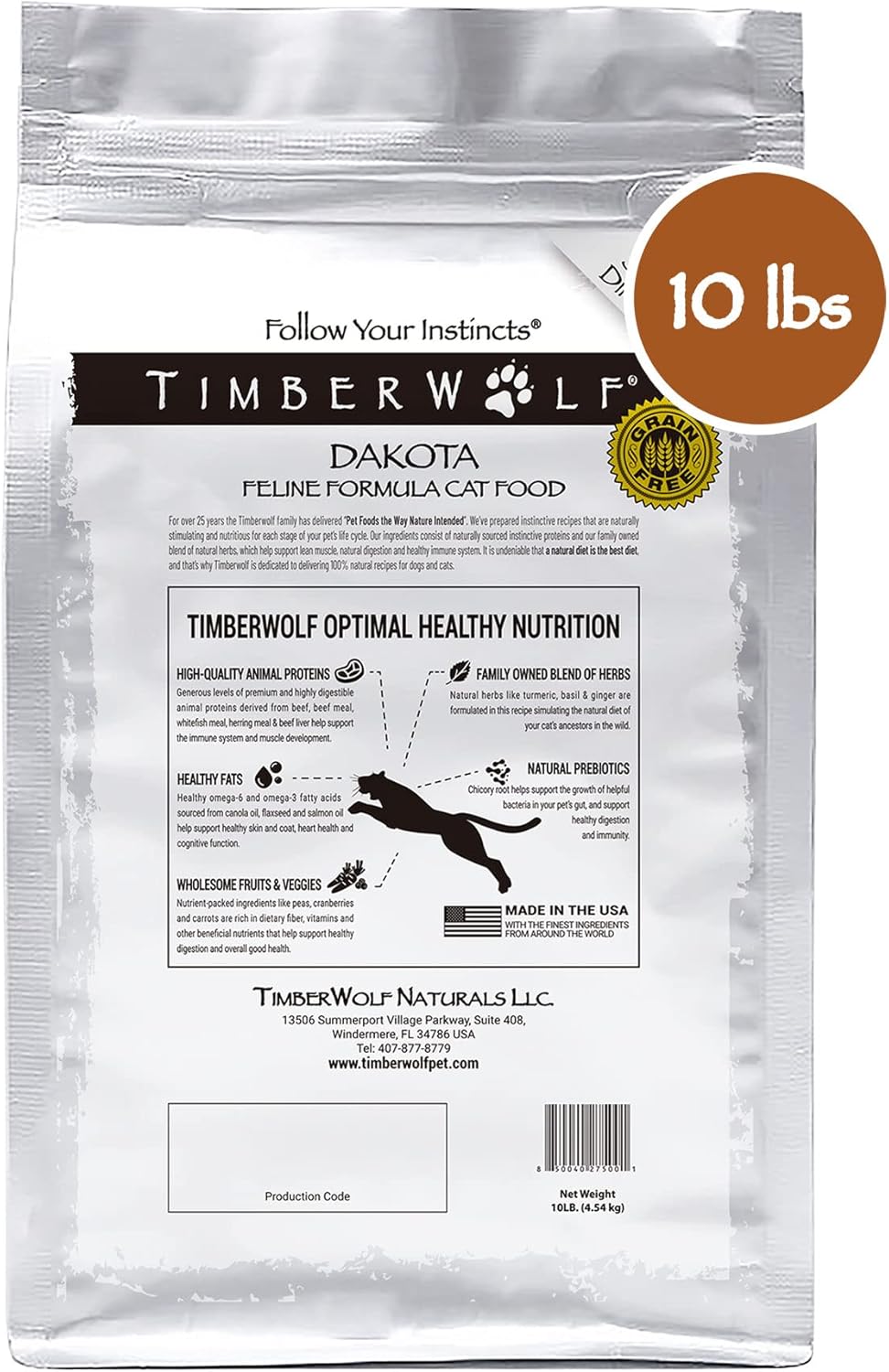 - Timberwolf's Family-Owned Herb Blend: Formulated with 7 natural herbs, this diet replicates the instinctive diet of cats' ancestors, providing a range of health benefits, including gut health support, strengthened immune system, and anti-inflammatory properties.
