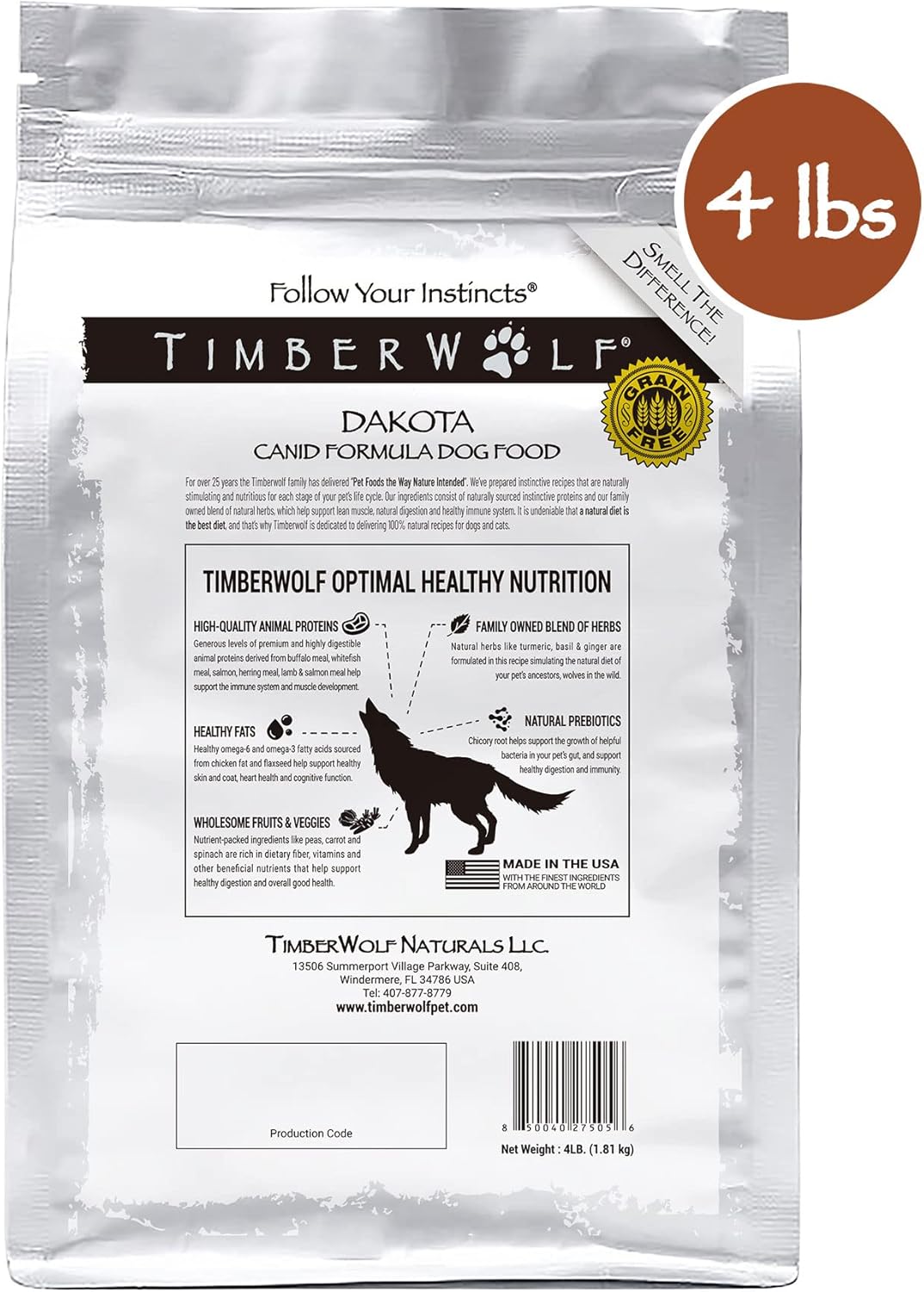 - Timberwolf Optimal Health Nutrition: Dakota Legends is crafted with premium animal ingredients, nutritious oils, natural herbs, wholesome vegetables and fruits, and prebiotics to deliver complete and balanced nutrition to all life stages canines.