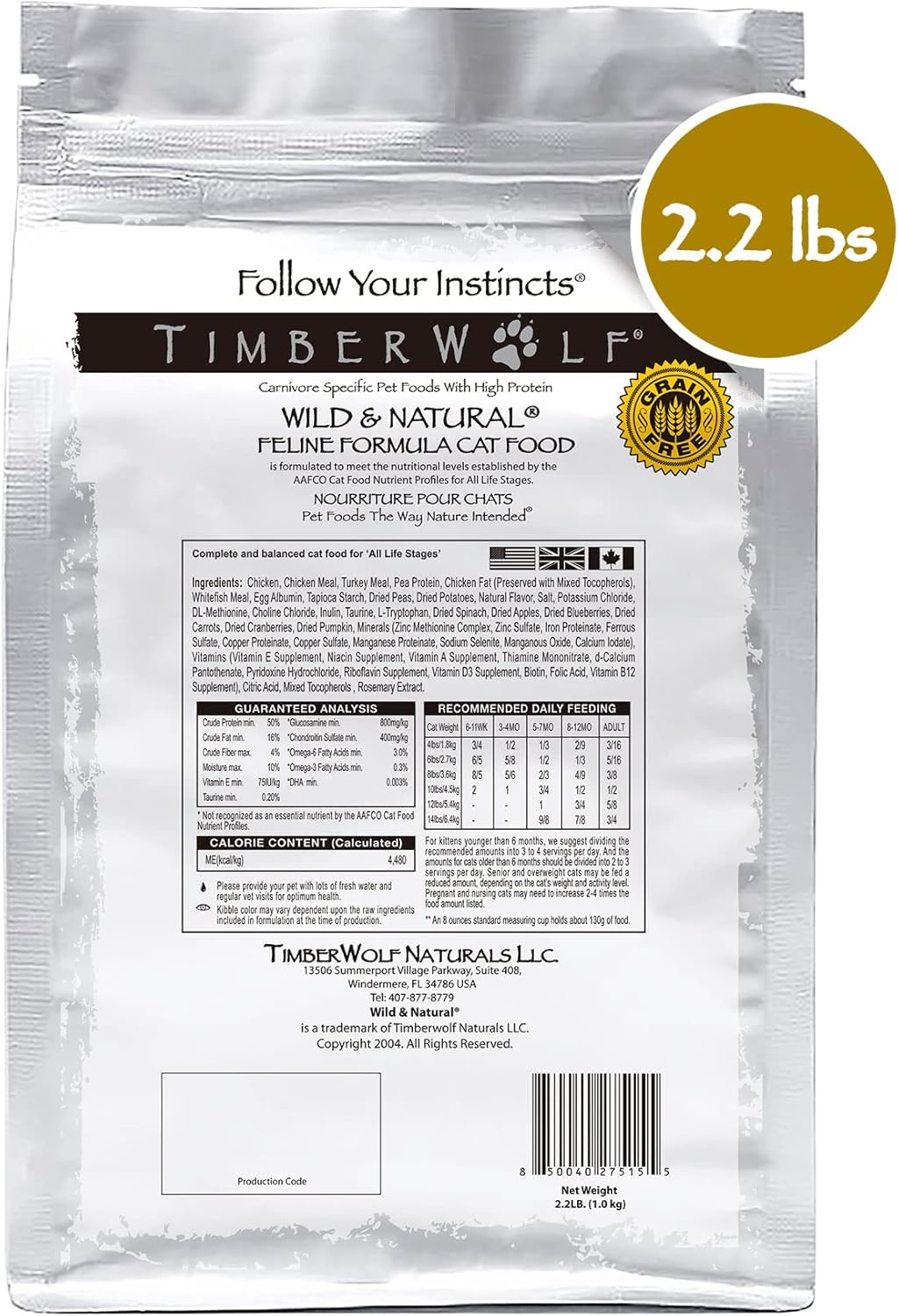 Timberwolf Wild & Natural Chicken Cat Food - 2.2lb