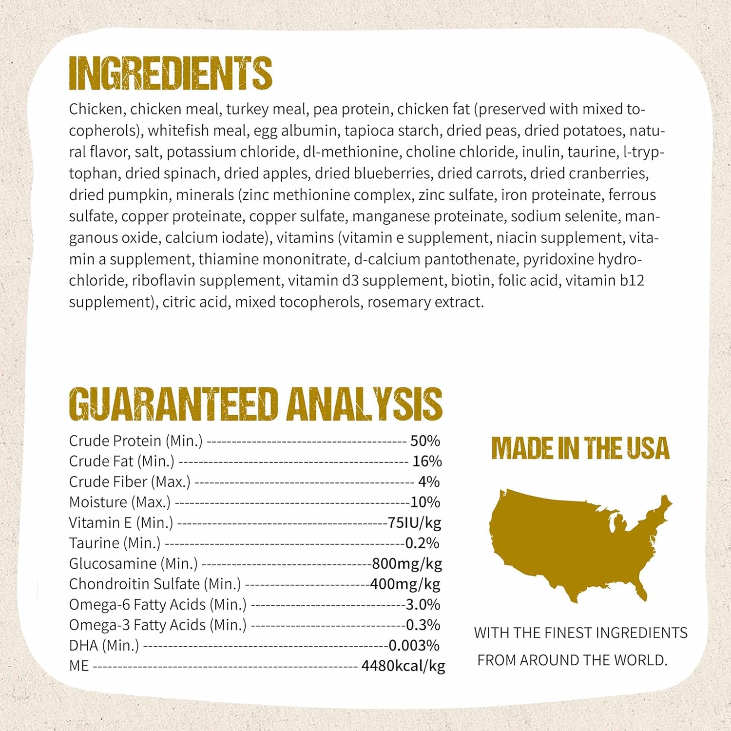 - 1# Ingredients is Fresh Chicken: Formulated with fresh chicken, chicken meal, turkey meal and whitefish meal that USDA certified. Made in the USA with the finest ingredients from around the world.