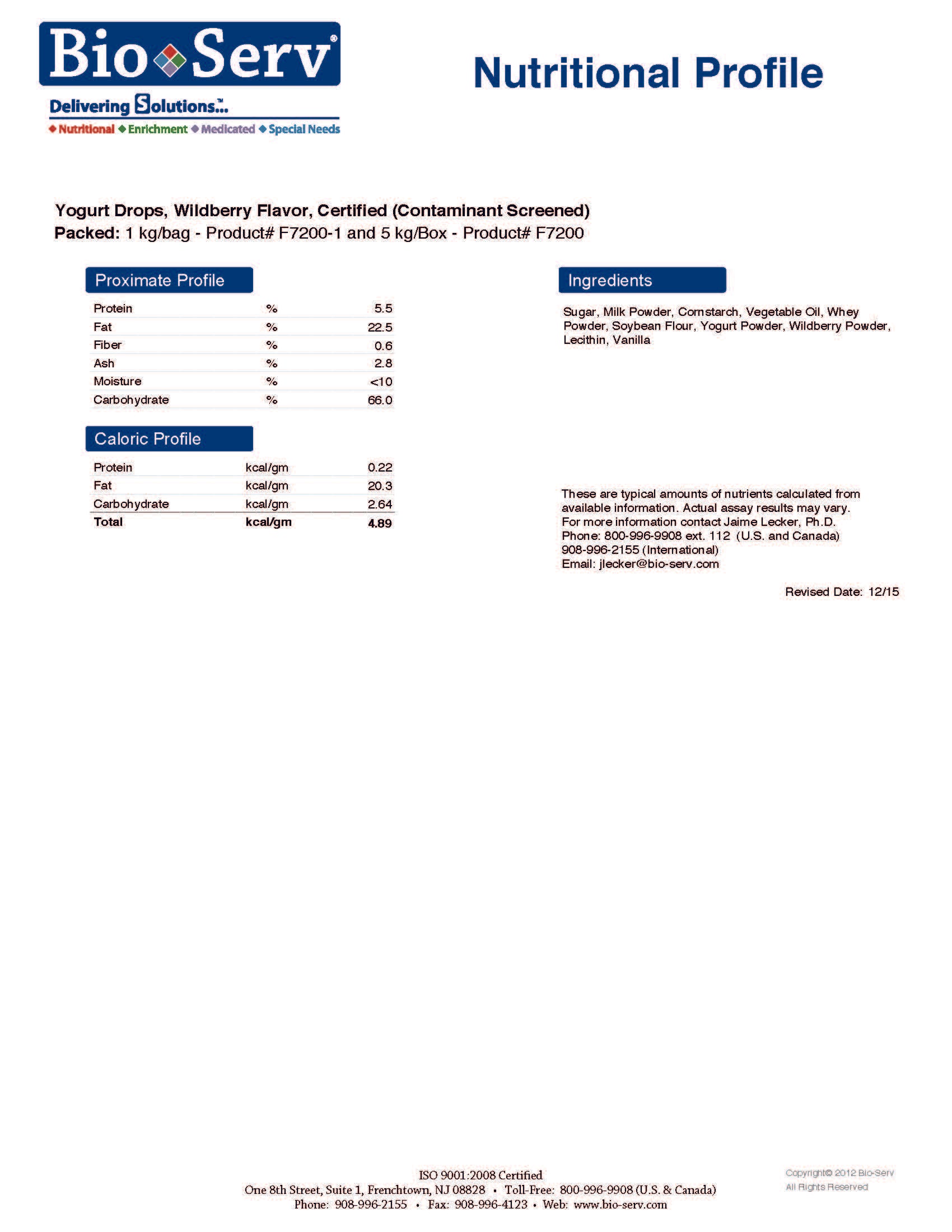 Yogurt Drops, Certified - Wildberry Flavored - 1kg